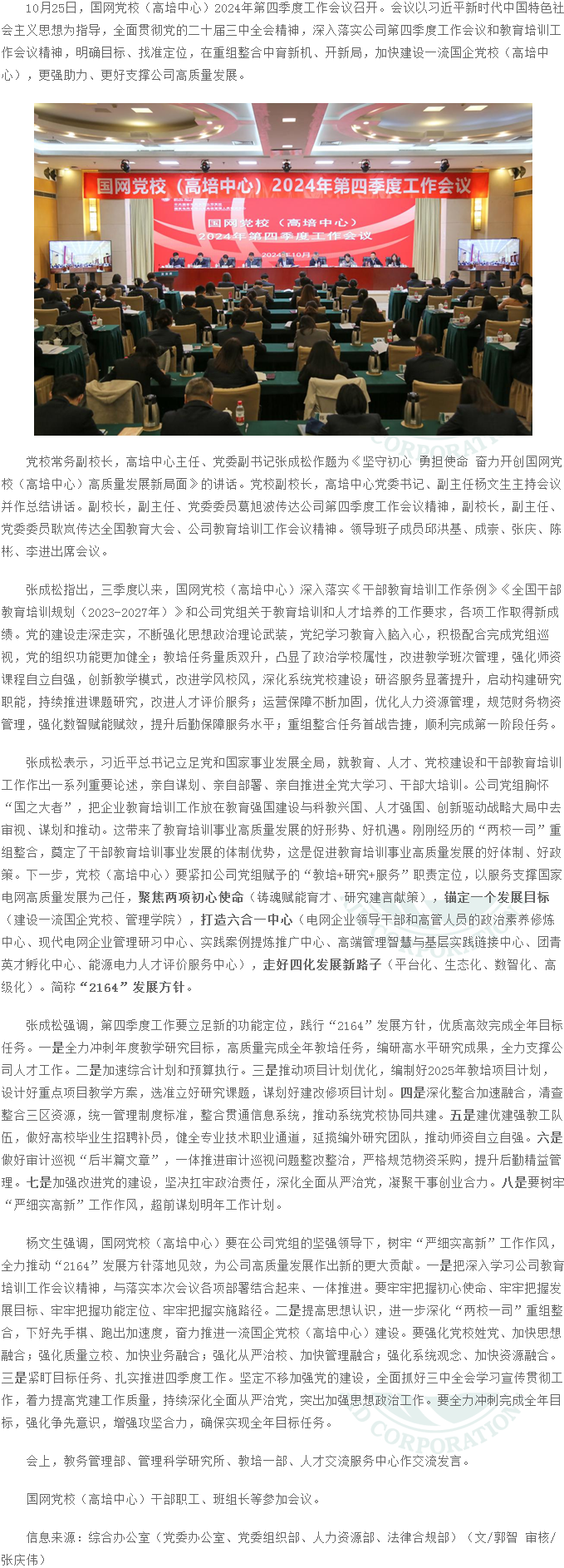 • 國網(wǎng)黨校(高培中心)召開2024年第四季度工作會議